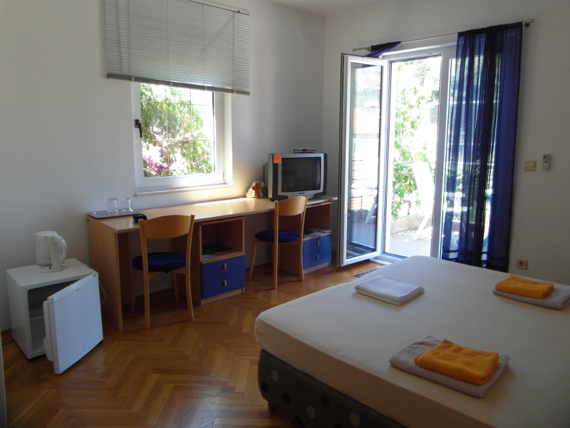 Yellow room (Camera Gialla) e una camera di 20 m2 per 2+1 persone. La camera ha il bagno privato con ingresso dalla camera e il balcone con la vista sulla parte vecchia della città di Korcula e la penisola di Peljesac. C'e' l'aria condizionata, mini-frigo, scaldatore per l'acqua e TV. Gli ospiti hanno parcheggio privato vicino alla casa.